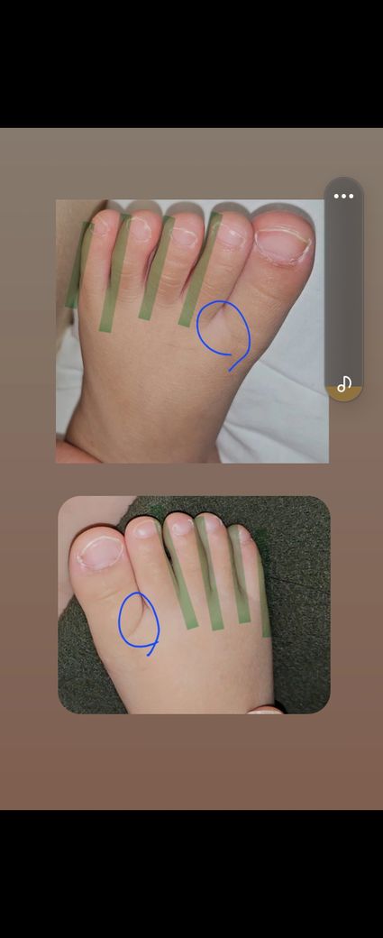 521일 된 아기가 잘 걷고 뛰어다니는 상태라면 대체로 건강한 발달을 하고 있는 것으로 보입니다. 사진에서 엄지발가락과 두 번째 발가락 사이에 주름이 생기면서 발가락 배열이 곡선처럼 보이는 현상은 아직 발이 완전히 성숙하지 않았기 때문일 수 있습니다. 어린 아이들의 발은 성장하면서 형태가 변할 수 있고, 특히 유연한 관절과 연골 때문에 발가락 배열이 어른과 다르게 보일 수 있습니다. 주름 자체는 아기가 활동하면서 생긴 자연스러운 현상일 가능성이 높습니다. 만약 아기가 걸음걸이에 문제가 없고 통증이나 불편함을 호소하지 않는다면 크게 걱정할 필요는 없습니다.