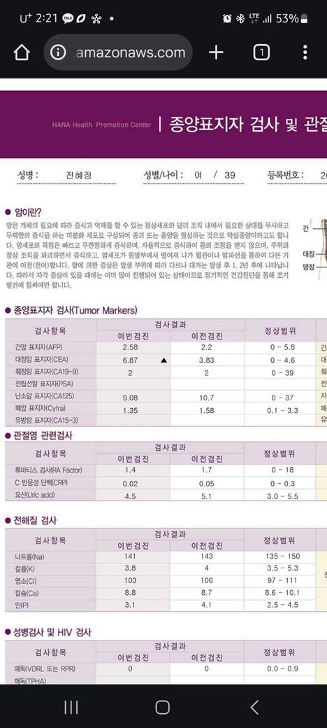 2주전 건강검진 결과가 나왔는데 CEA상승 정상범위를 벗어났습니다.ㅠㅠ