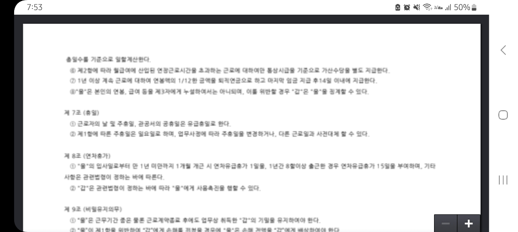 일단 근로계약서에 제 7조에 따라 공휴일은 유급휴일로 한다고 되어있습니다.