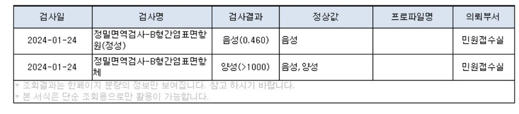 B형 간염 항체 검사결과를 조회했는데요?