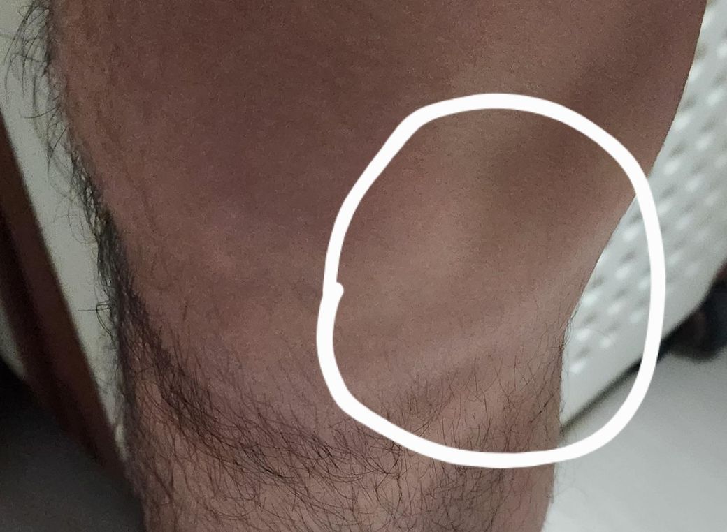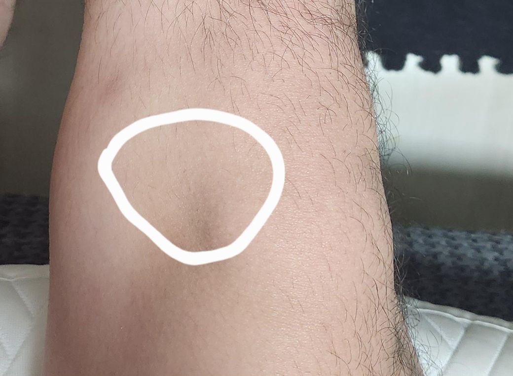 다리를 공중에 쭉 펴고 대퇴사두근(앞벅지)에 힘을 주면 해당 부위에 즉각적인 통증 발생.