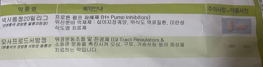 식도염약 (넥시움정20mg,모사프로드서방정15mg)