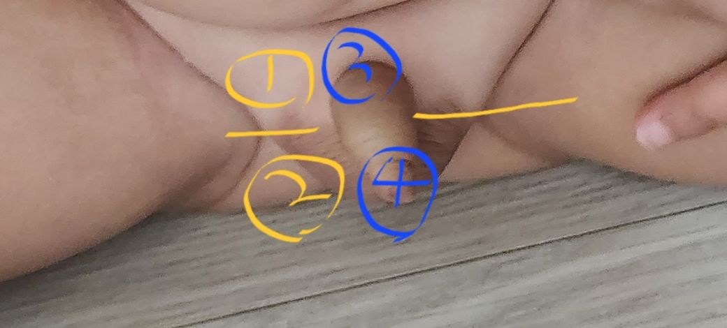아기 고추 붕알 색이 사진처럼 윗쪽(1번) 은 하얗구 아래쪽(2번) 거뭇한가요?