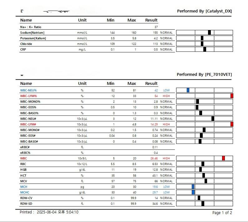 저희강아지 혈액 검사분석 부탁드립니다