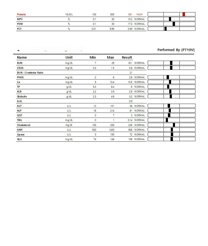 안녕하세요 갑자기 아침부터 바닥을 오랫동안 핥다가 토를 엄청해서 바로병원가서 혈액검사랑복부초음파했는데요 초음파에서는 특이사항이없었는데