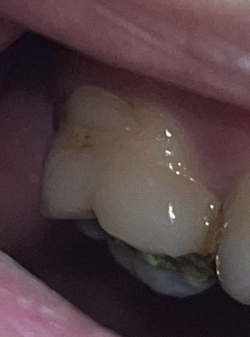 사진으로 보이는 부분은 이전에 충치 등으로 인해서 치료를 했던 재료가 떨어진 것으로 보입니다.
