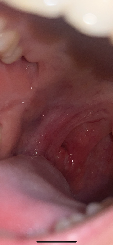 하얀부분 암인가요? ......뭔가 거울로 보면 촘촘한 하얀색??박혀있는거같아요 편도염이 있던 부분이였던거같기도하고요..