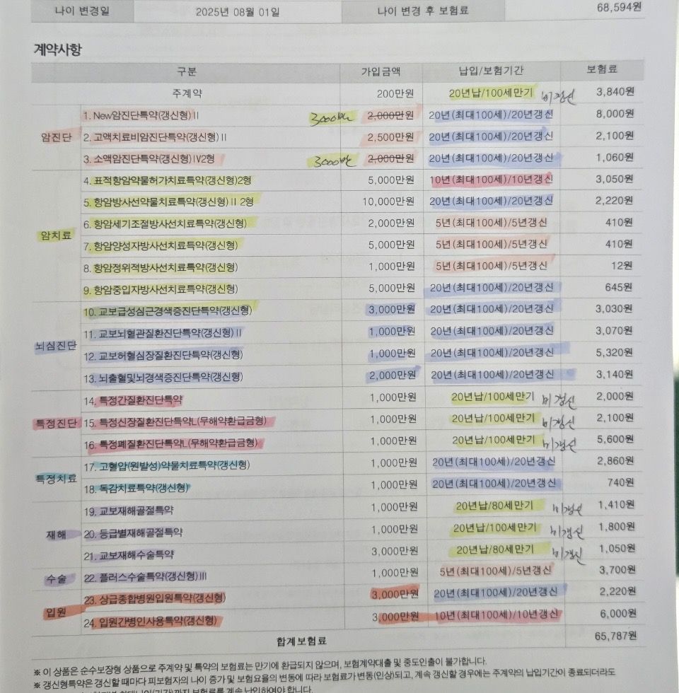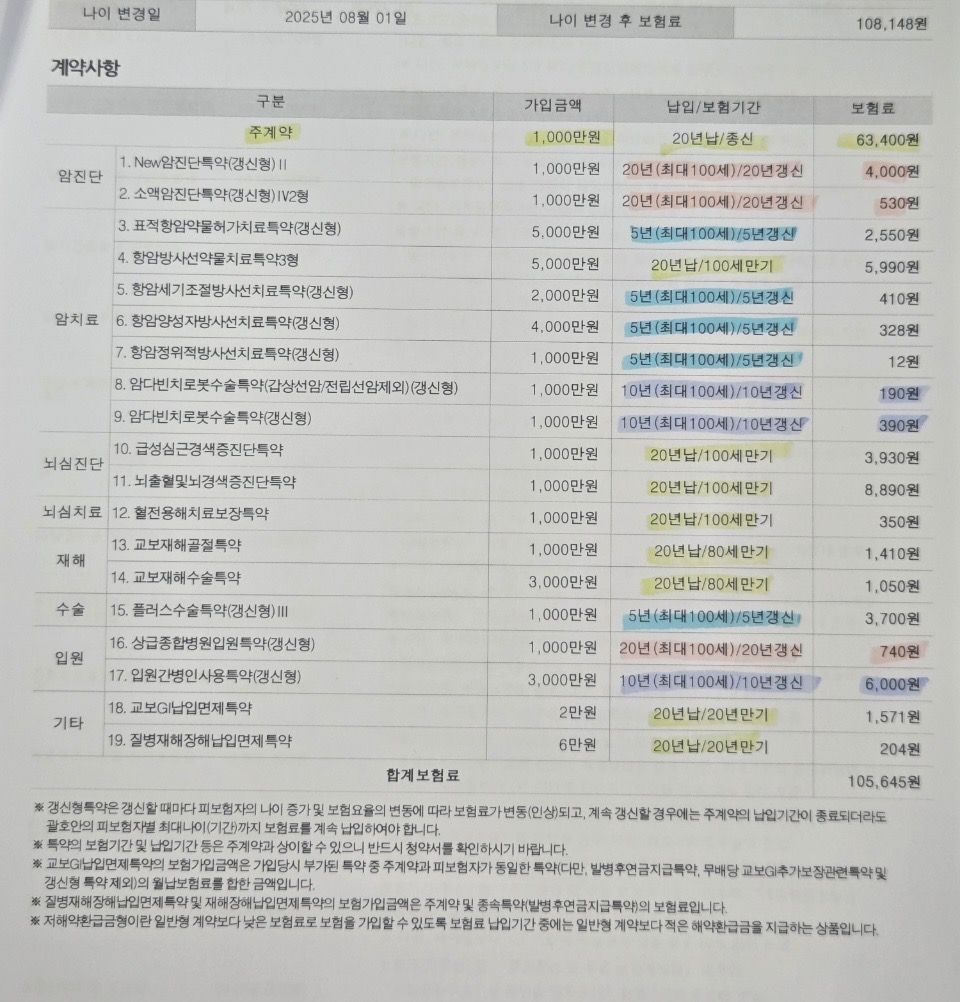결국 보험의 경우, 내가 어떤 부분에 대한 대비를 할 것인지에 대해, 그 보장범위를 선정하는것에 따라 보험료가 조금씩 달라질 수 있다고 볼 수 있습니다. 이러한 부분을 기초로 볼때 나의 가족력이나, 현재의 상태를 돌아보시고, 그 필요한 부분에 추가적인 특약을 가입하면서, 추후에 발생할 수 있는 문제 상황에 미리 대비를 하신다고 생각하시면 될 것 같습니다. 보험사의 고객센터에도 문의하시되, 다양한 보험사에도 문의하셔서 보장정도나 보험료를 확인해보시는 것도 좋을 것 같습니다.