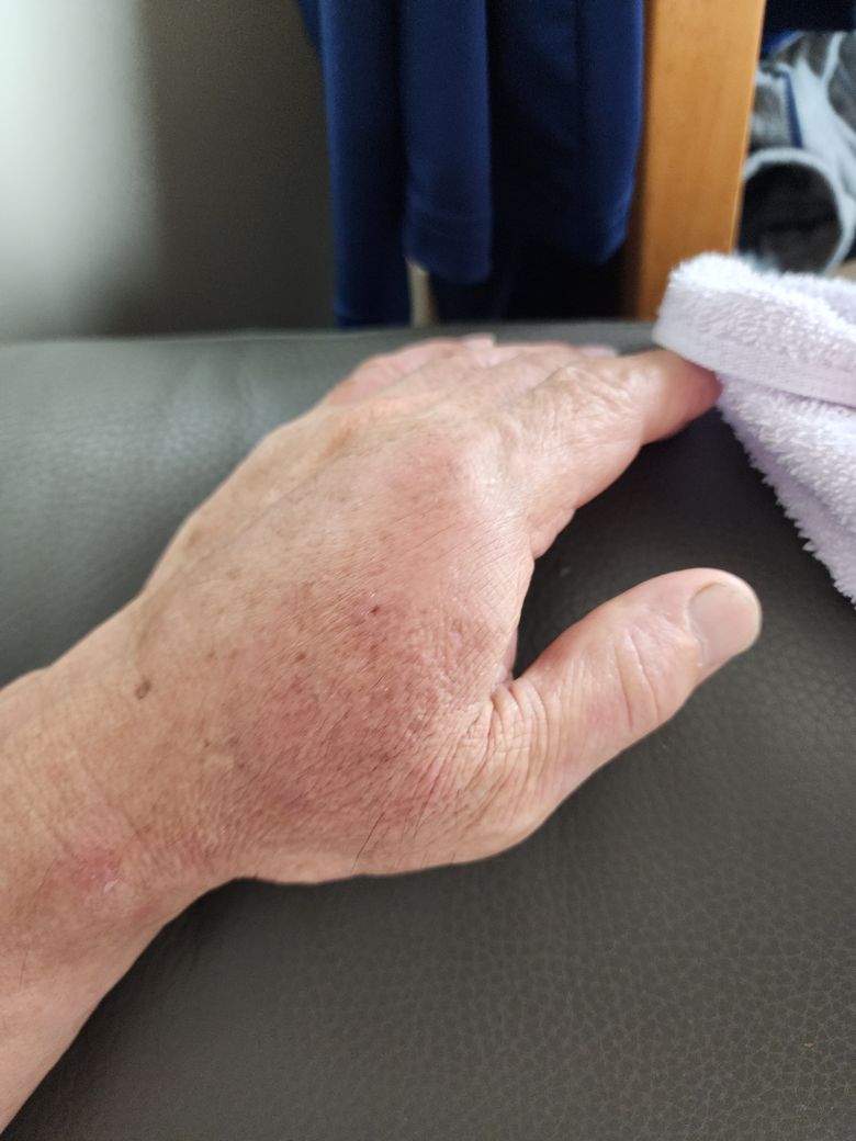 손이 상당히 많이 부은 것으로 보입니다.