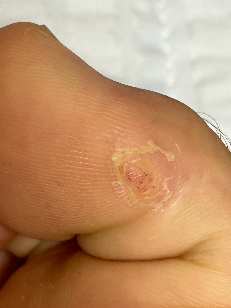 우선 사진만 보았을 때에는 점상출혈이 동반되는 것으로 보아 사마귀의 가능성이 좀 더 높아 보이는데, 만약 눌렀을 때 통증이 있다면 티눈의 가능성을 좀 더 시사하겠습니다.