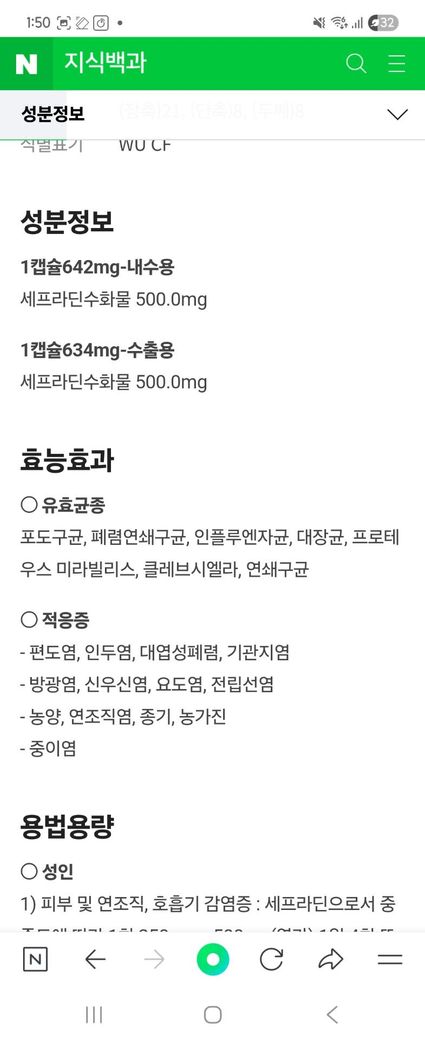 하루2번 먹는걸로 5일치 잇엇고 (위더스세프라딘캡슐500mg 입니다)