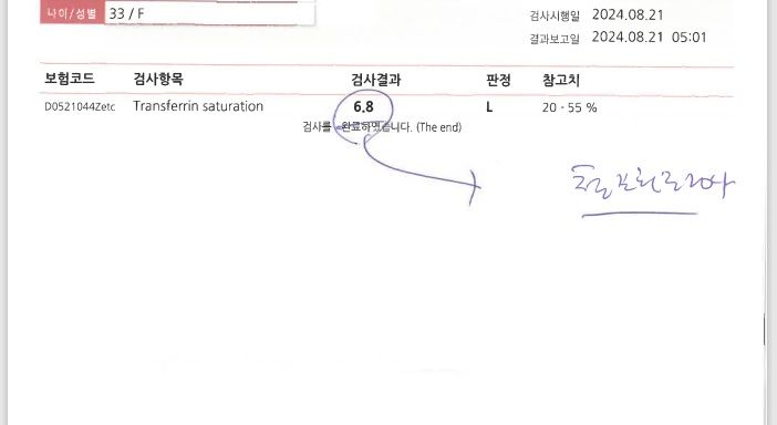 철분수치가 최저20은 나와야한다구 하더라구요?