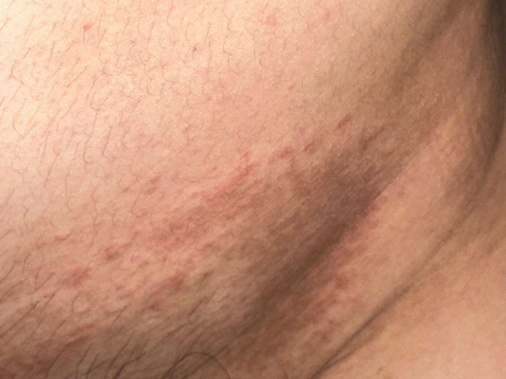 작년부터 허리 벨트 차는 부분에 오돌토돌 가려움을 동반한 빨간 두드러기가 났습니다 기존에 아토피나 피부염을 앓고 있지않았던 터라 동네 피부과 방문해서 스테로이드 배아솔론정을 6주 정도 복용하고 괜찮아져서 복용을 중단했는데 일주일 만에 다시 이렇게 나고 한쪽은 착색이 벌써 진행됐습니다