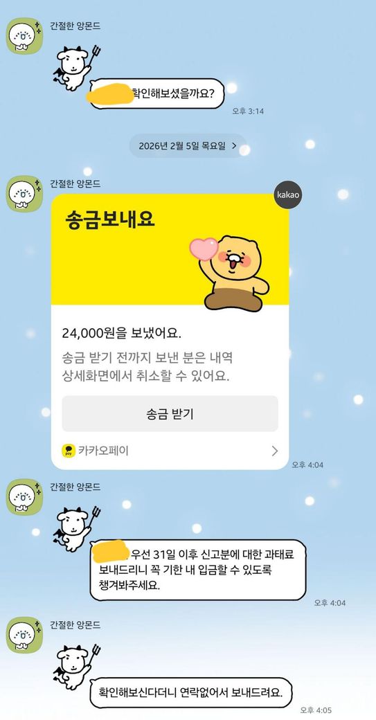 제가 1. 31. 근무는 하지 않았다고 하니 따지는게 기분 나쁘다는 듯 그 사람은 빼고 나머지 9명에 대해 납부하라면서 저한테 돈을 일방적으로 보냈습니다.