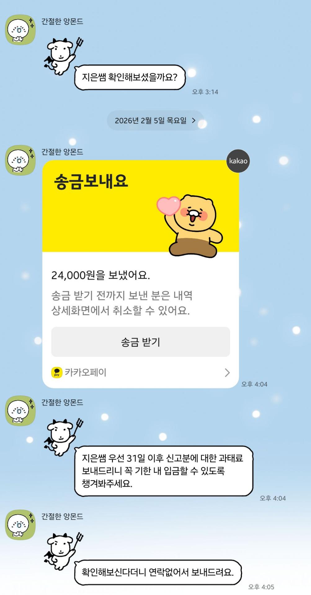 다행히 카카오톡으로 받는 거라 수락하지 않아서 받지 않았는데