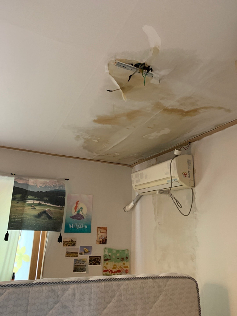 1년 계약으로 월세집에서 살고 있는데 한달 전부터 계속 천장에서 조금씩 물이 새다가 얼마 전 폭우 기간에