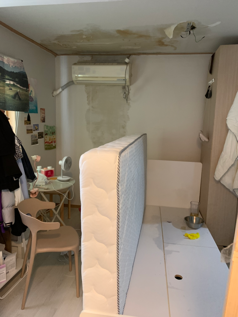 집주인이 수리를 해주신다고 했는데 비가 그칠 때까지 기다려야한다고 계속 미뤄져서 언제 원상복귀 될 지 모르는 상태에서 이사를 결심했는데