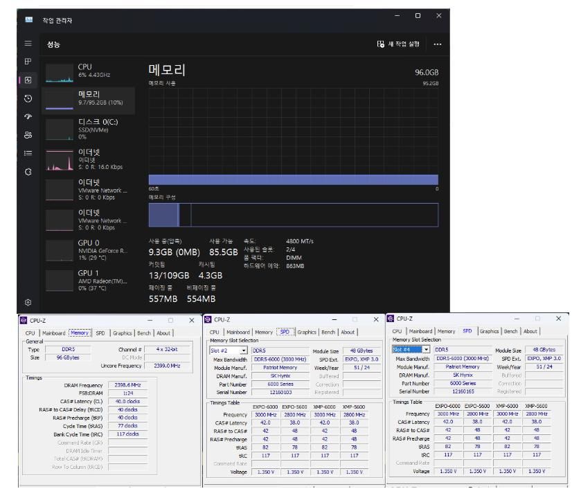 96기가 듀얼모델 6000MHz 클럭 샀느넫