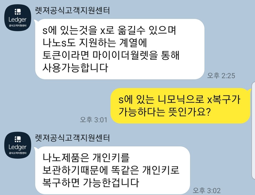 안녕하세요.렛저나노S 사용자인데, 렛저나노 X 추가 구입시 동기화 되나요?라고 문의하셨는데요