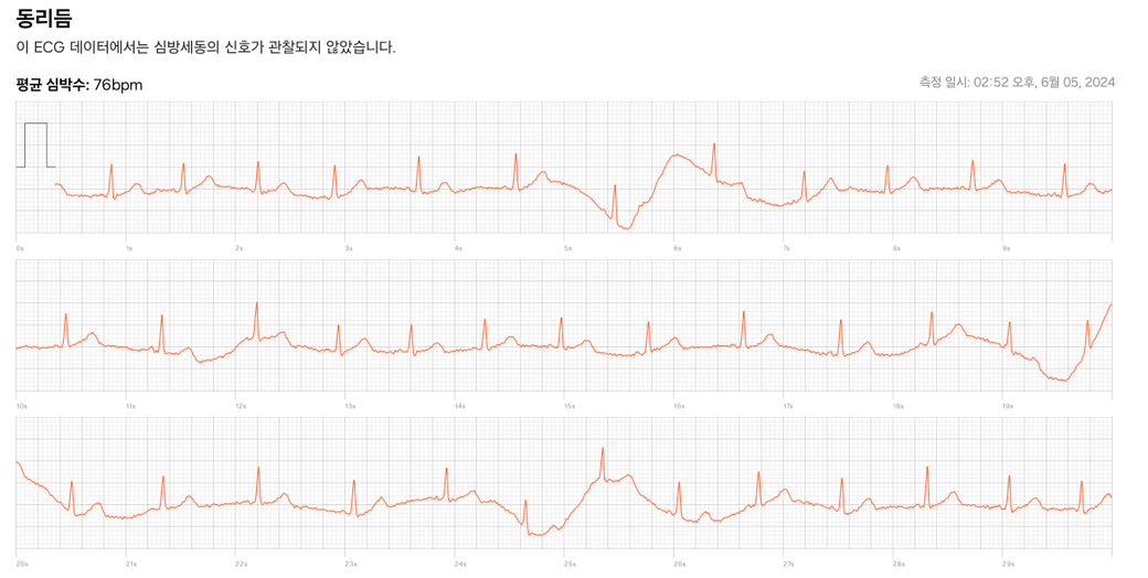 ecg그래프 첨부합니다. 동리듬으로 뜨긴했는데 보시면 불규칙하게 널뛰기 하는것 같아요. 부정맥증상인가요..