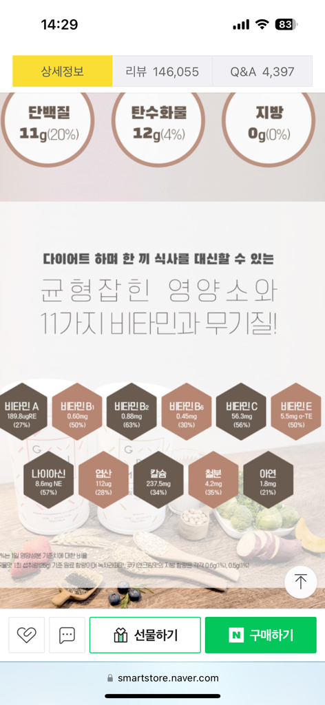 성분이 겹치기는 하지만 단백질 쉐이크의 영양소가 매우 적게 포함되어 있어