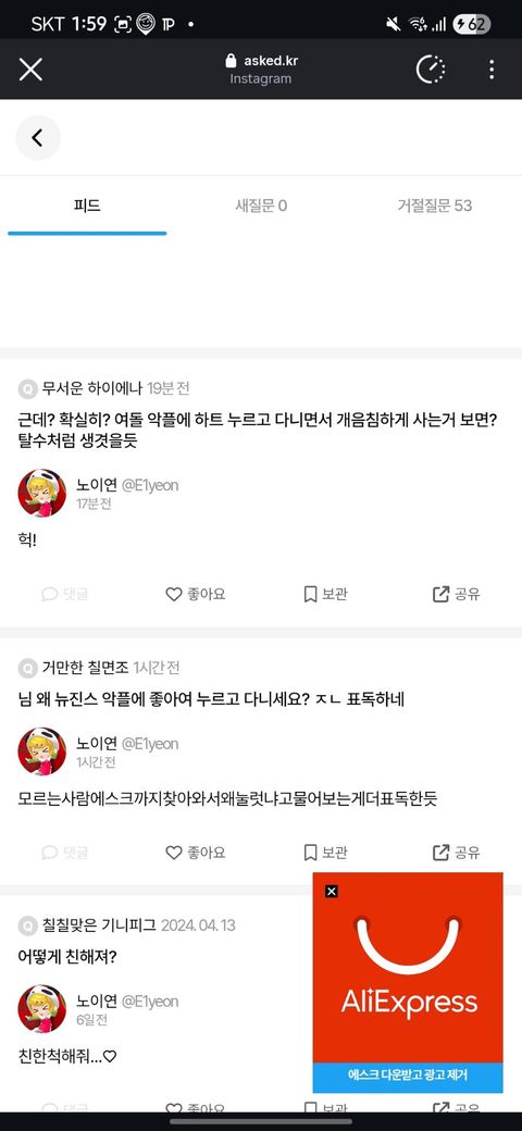 제가 릴스를 보는데 이런 게시글에 좋아요를 눌렀었거든요 근데 누가 좋아요 목록 보고 제 계정을 염탐했나봐요 그 계정에 걸려있던 에스크에 이런 욕이 달렸는데 사이버스토킹이나 모욕죄로 고소 되나요? 추가로 그 계정에 제 인스타 본계를 걸어놨었고 그거로 제 이름, 나이, 제가 가려는 고등학교까지 알아낸 것 같아요