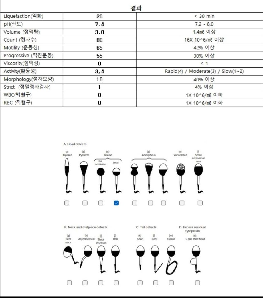 정액검사 결과 받았는데 자연임신 문제 될까요??(사진첨부)