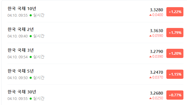 하지만 국채의 이자율은 매일 변동하므로, 정확한 이자율은 해당 일자의 시장 금리를 확인해야 합니다. 또한, 국채의 이자율은 새로운 발행시기나 시장 변동에 따라 변동될 수 있습니다.