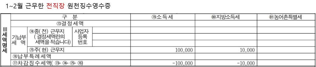 먼저 전 직장에서 제가 낸 소득세는 10만원, 지방소득세는 1만원입니다.