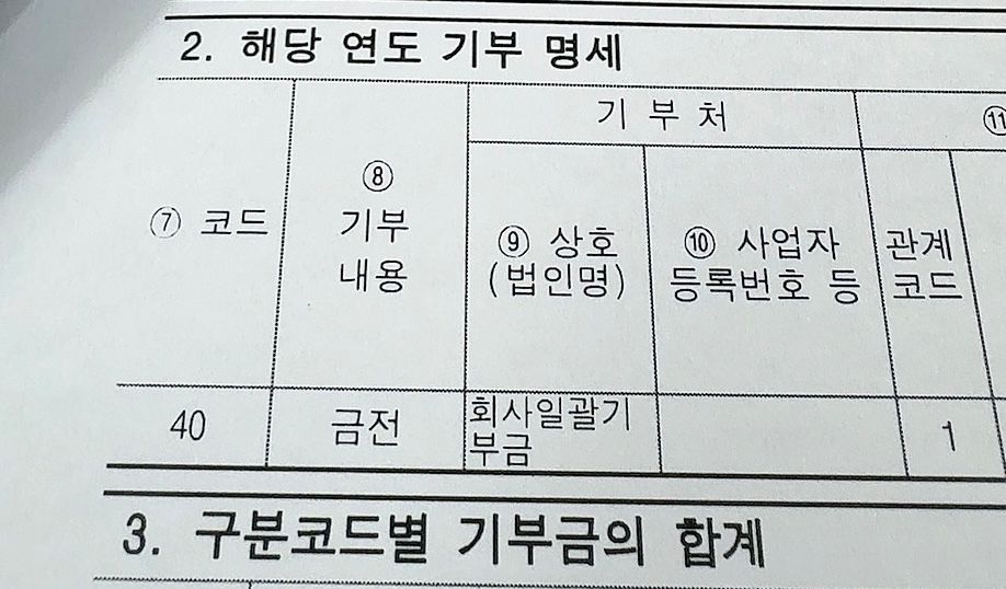 기부금 명세서에 사진처럼 상호에 회사일괄기부금 써있는건 이 회사에 기부를 했다는건가요?