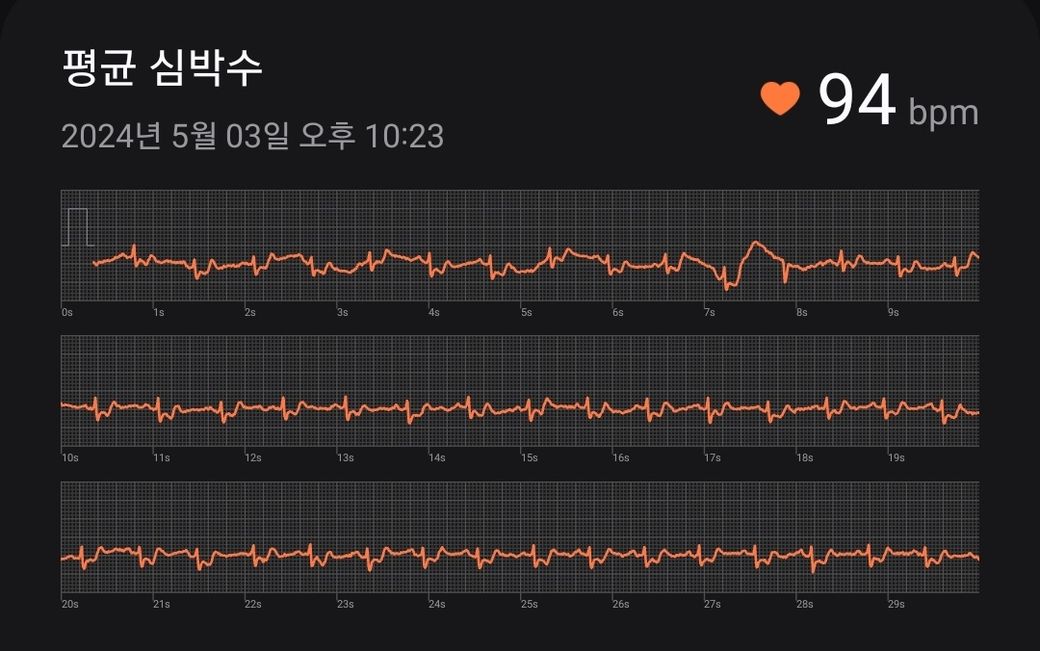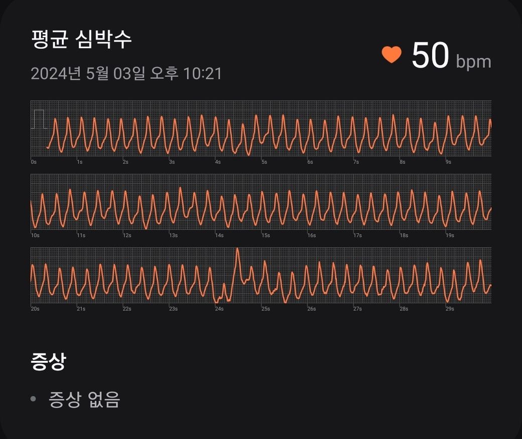 방금인데 귀도 먹먹해지고 정신을 잃을 것같은 상태였어요 ㅠㅠ 왜 이러는건지 알 수 있을까요 bpm은 또 낮게 나오는 게 이상하네요. 이러다가 어느 순간 갑자기 괜찮아짐을 느꼈어요 한 5분 정도 지속되었습니다.