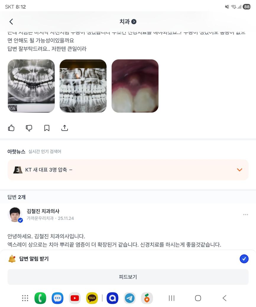 누공이 생기면 무조건 신경치료죠..? 그리고 김철진 의사님 똑같은 사진을 보고 다른 판단을 하시는건 뭐죠?