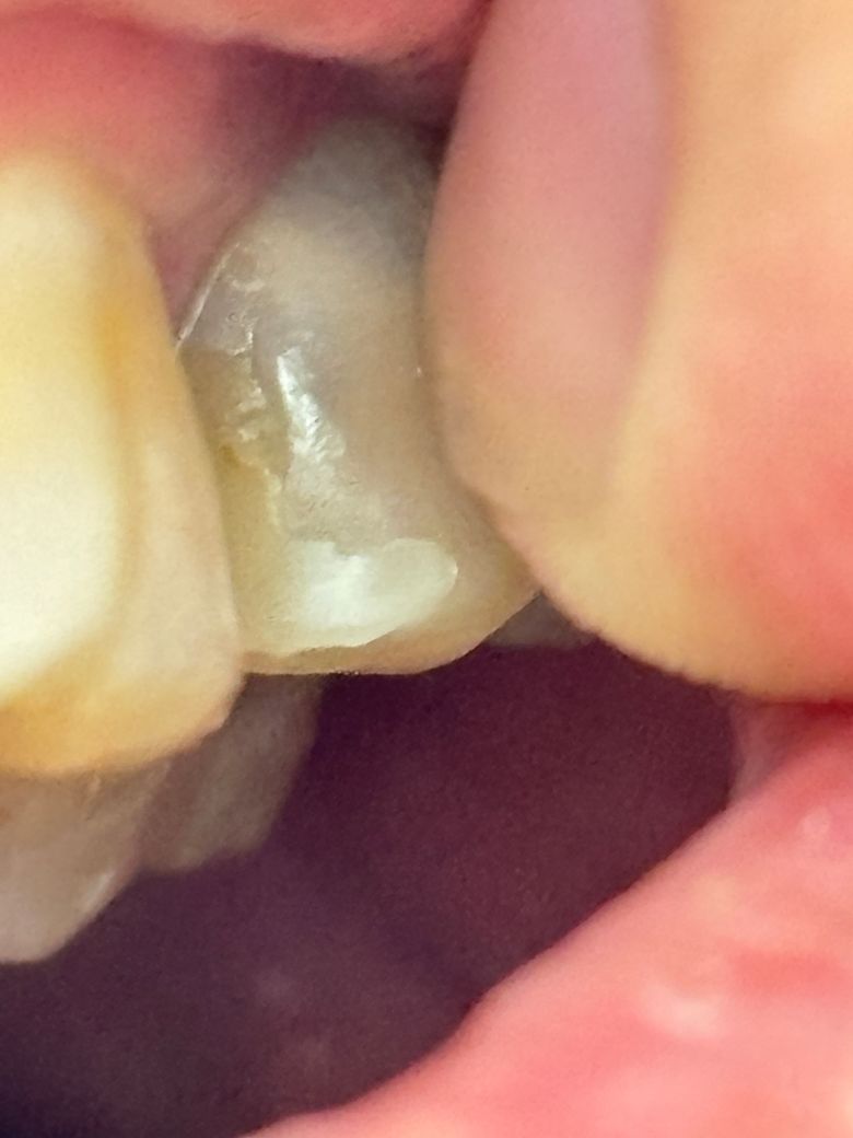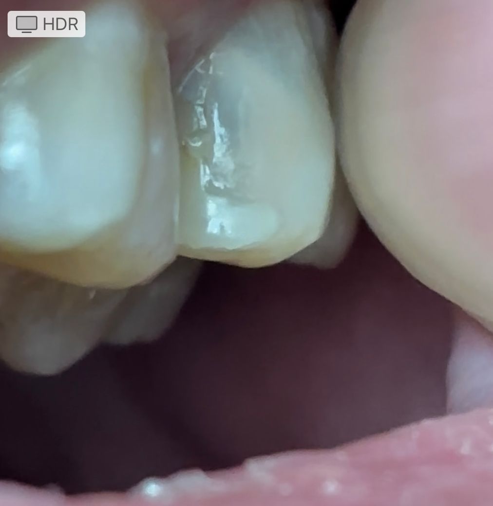 이번주에 충치 치료받으러 갈 예정인데 크랙인가요?손톱으로 긁으면 약간의 틈이 느껴집니다. 통증이나 시림 등 불편함은 느껴지지 않습니다