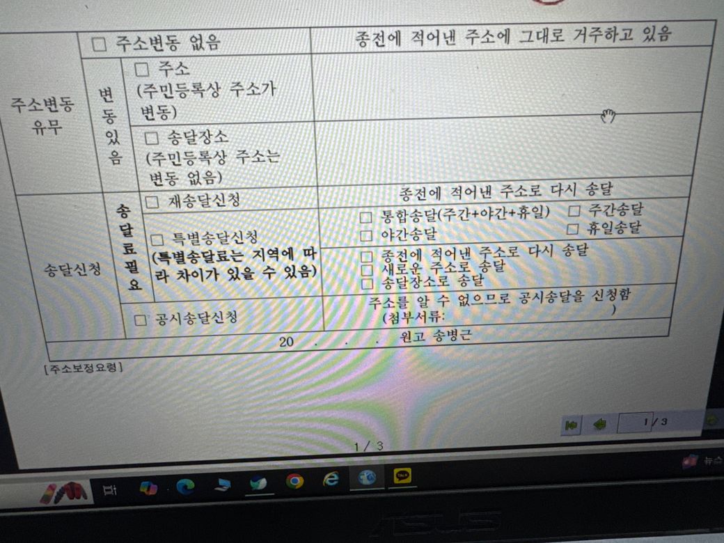 그전에도 보정명령서를 작성해서 초본이랑 은행계좌, 휴대폰 번호는 알고있습니다.