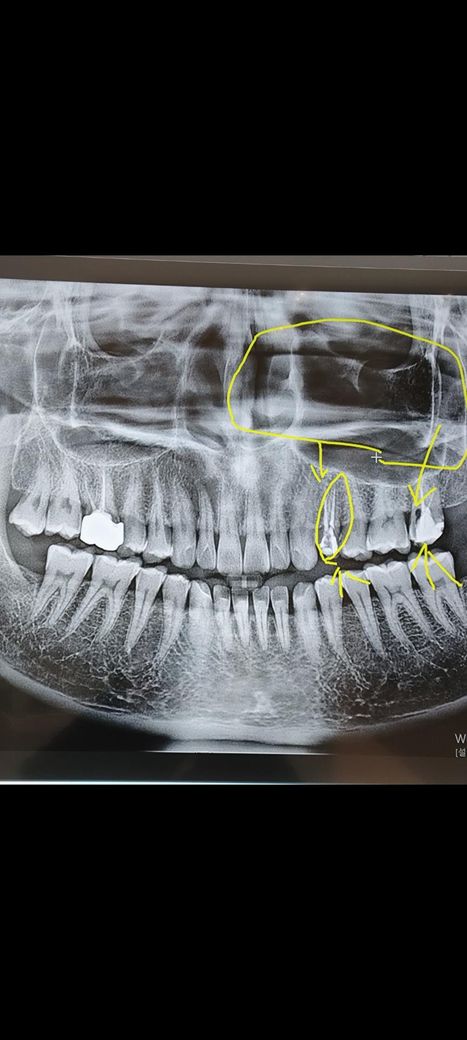 엑스레이사진상으로 오른쪽 윗어금니인데 사진보시고