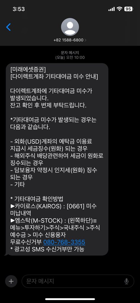 증권사에서 기타대여금 미수가 발생되었다는 것은 일반적으로 주식 거래나 투자 등을 위해 증권사로부터 대여한 자금 중 일부가 아직 변제되지 않았음을 의미합니다. 이는 증권사가 투자자에게 대여한 자금에 대한 변제를 요구하는 내용입니다.