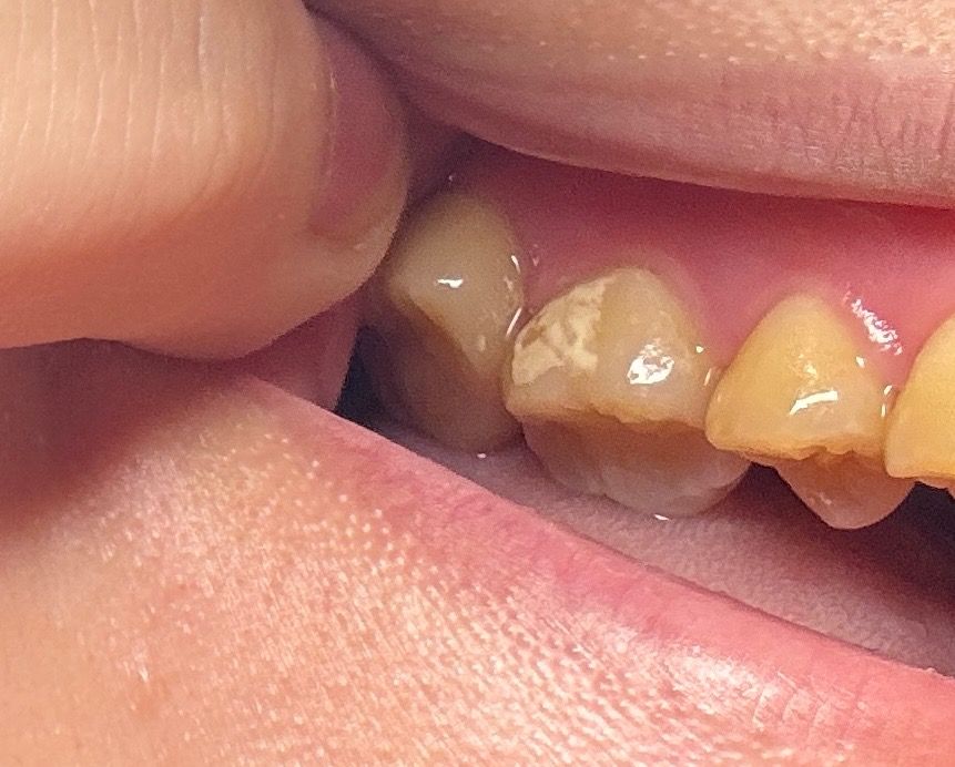 충치일까요... 어떻게 치료하나요... 치과를 가봐야할까요? 시리거나 아프지는 않습니다 계속 놔둬도 되는 걸까요 양치를 해도 없어지지 않아요
