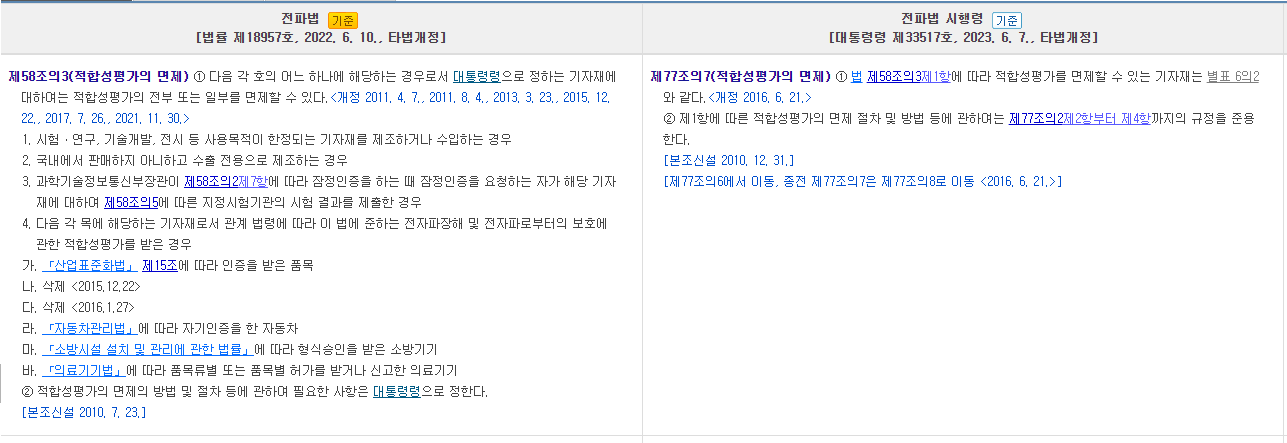 먼저 전파법에서는 적합성평가의 면제와 관련하여 아래와 같이 규정하고 있습니다.