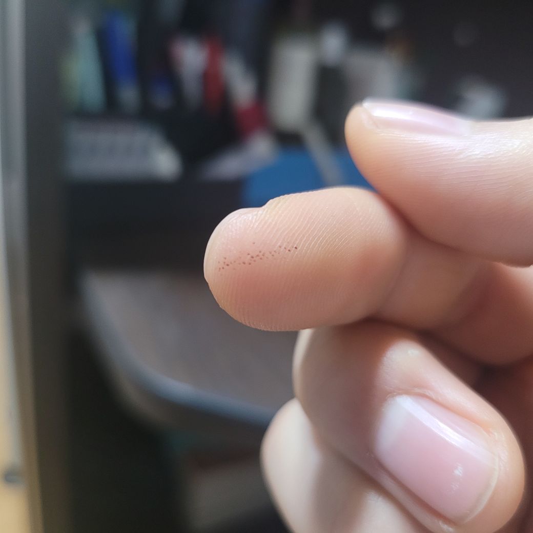 며칠전에 검지손가락 끝부분에 이런 점 같은게 생겼습니다. 지저분한게 뭍은줄 알고 씼었는데도 안없어지고 사프 끝브분으로 긁었는데도 안긁히더라구요. 감각(질감)도 다른 손가락에 비해 좀 단단한 느낌입니다 이 점같은것의 정체가 뭔가요?