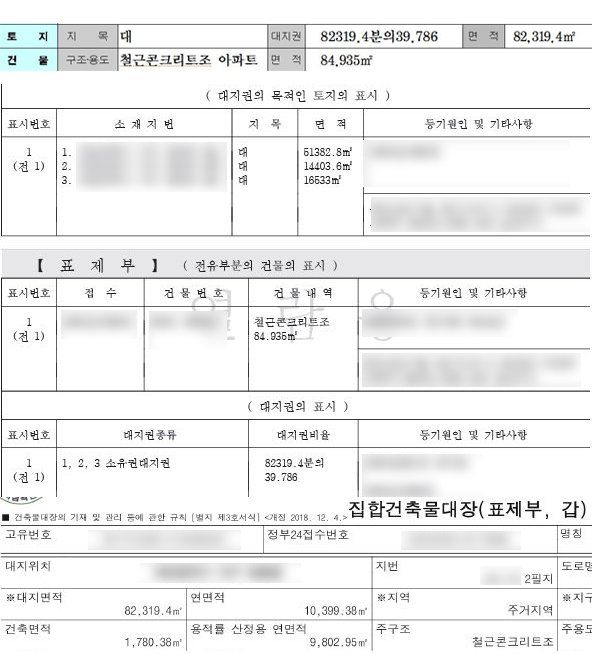 등기부등본에는 필지가 나눠져 있어 면적이 3개로 나와 있는데 1,2,3번중 해당면적을 기재해야 하는지 합한면적(건축물대장의 대지면적)을 기재해야 하는지 궁금합니다.