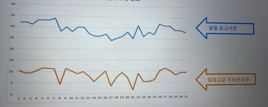 온도 상승과 자외선 지수 상승 사이에는 직접적인 연관 관계가 없습니다.