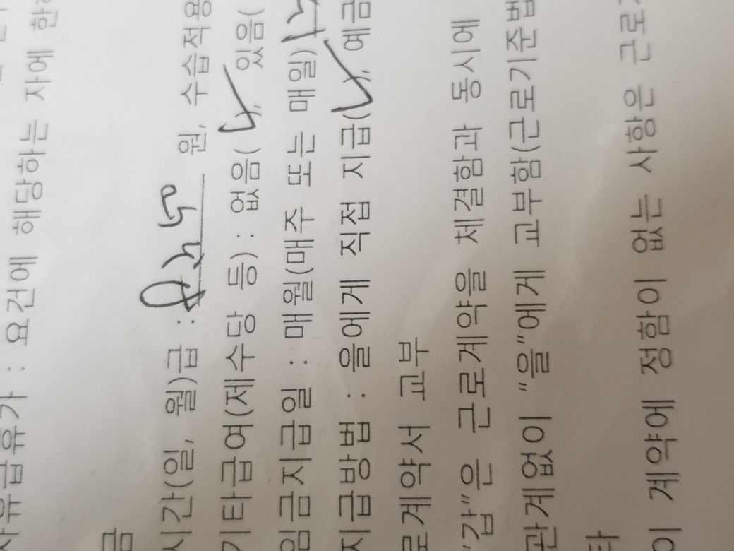 보시다시피 근로계약서에는 8350원에 직접지급이라고 되어있습니다.