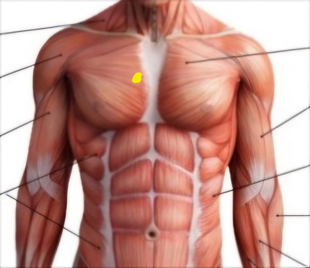 부모님께서 2일 정도 계속 오른쪽 윗가슴 안쪽 부근(노란색점)이 뻐근하면서 아픈다고 하시는데 혹시 어떤 이유들이 있을까요??