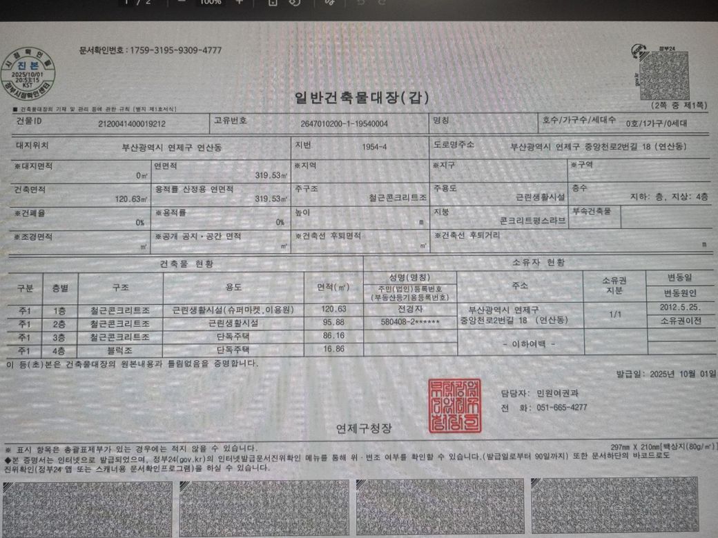 부동산에서 잘못올린건가싶어 건축물대장 발급해봤는데