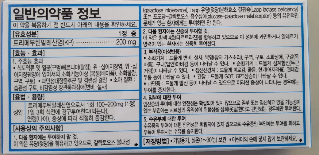 제이부틴 더블정에 포함되어 있는 트리메부틴 성분의 경우
