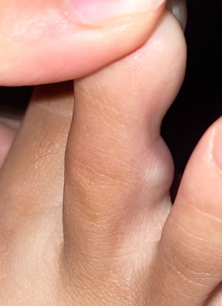 염증이나, 힘줄등이 붓거나 하는 증상일 수 있습니다. 병원에 방문하셔서 확인해보시는 것을 추천드립니다. 외과계열의 진료과나 피부과를 방문해보시는 것을 추천드립니다.