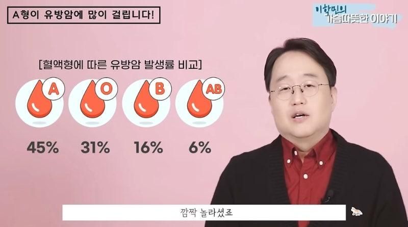 a형이 유방암, 대장암, 위암, 갑상선암 걸릴 확률이