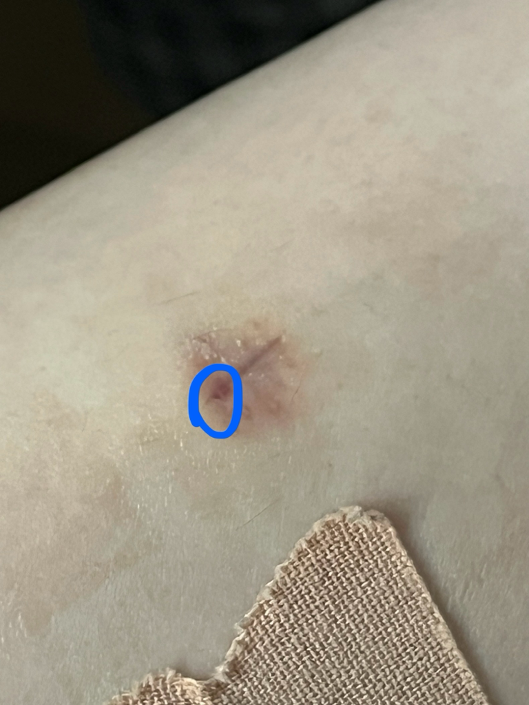 사진의 소견만 보고 정확하게 어떻다 이야기 하기는 애매합니다만, 봉합 부위가 벌어졌다기 보다는 해당 부위가 다른 곳들보다 결손이 다소 커서 보이는 소견이 아닐까 싶습니다.