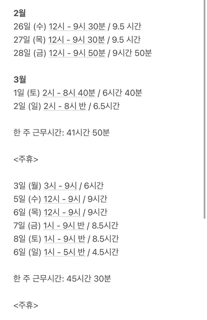 제가 지금 카페에서 알바를 하고있는데 특정 요일에 규칙적인 시간을 근무하는 것이 아니라, 사장님께서 그날그날 고지하시는 시간과 날짜에 맞춰 출근하고있는 상황이라 주마다 근무시간이 다릅니다.