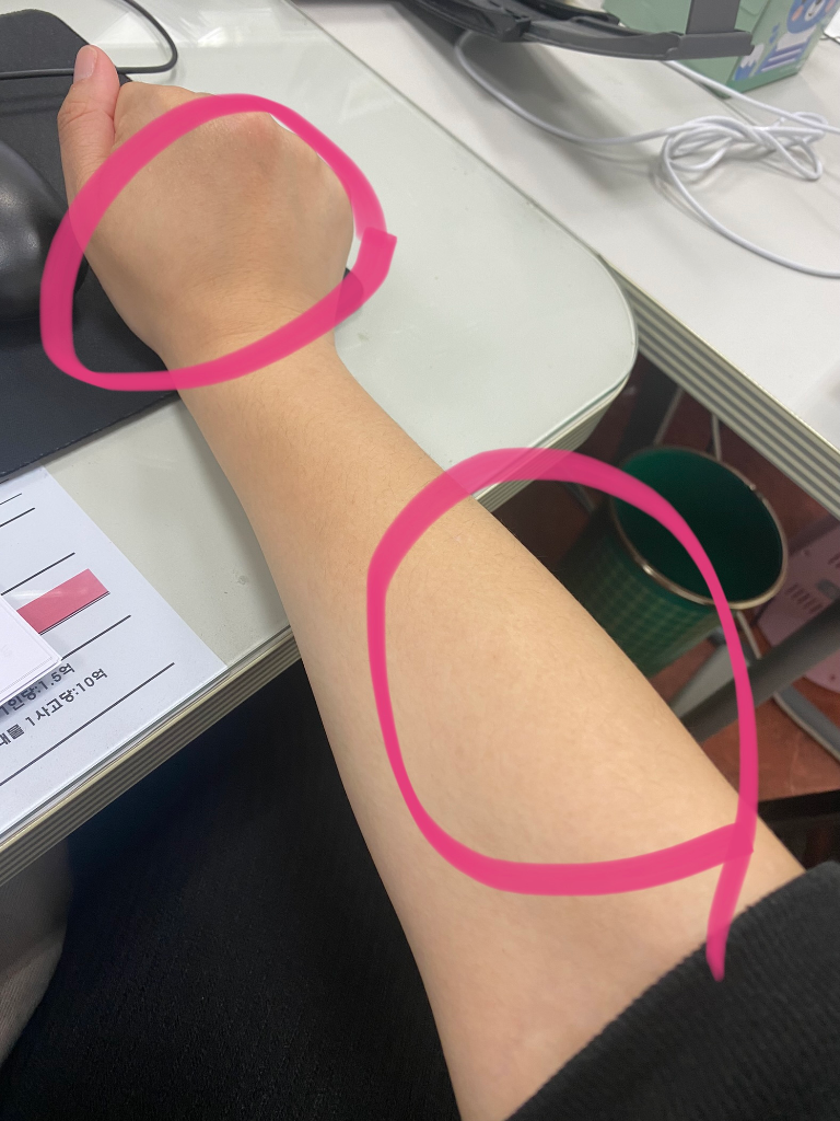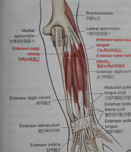 손가락 폄근이나 손목 폄근이 팔뚝에 위치하기 때문에 손을쥘 때 해당 근육들이 당겨지면서 통증이 생길 수 있습니다.